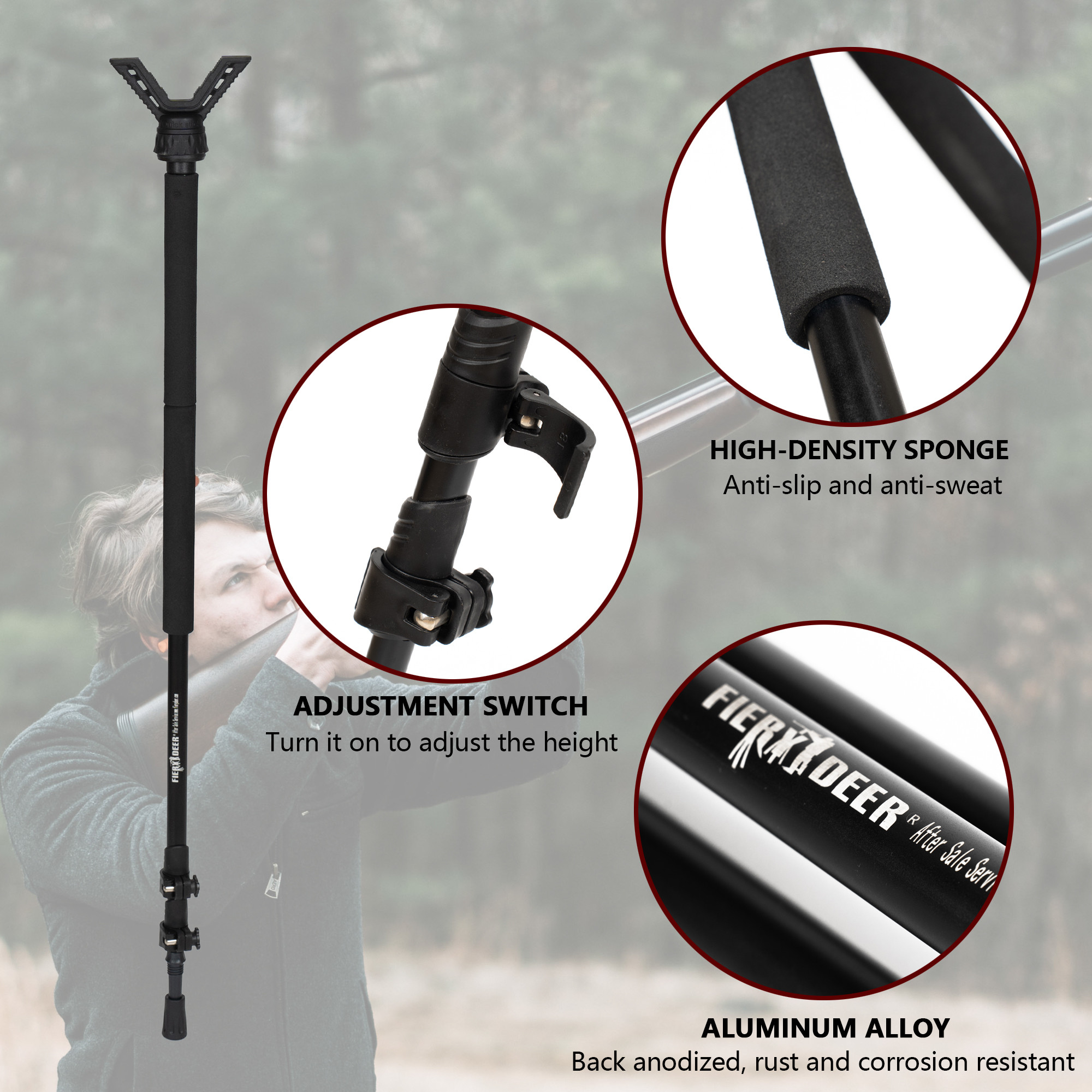 Salah satu fitur menonjol dari Hunting Bracket adalah rotasi 360 ° yang memungkinkan Anda untuk menyesuaikan sudut pemotretan Anda dengan mudah untuk gambar yang sempurna.Dari 70-180cm, memastikan bahwa Anda dapat menemukan posisi yang sempurna untuk menembak pemicu Anda, apakah Anda duduk atau berdiri.fitur sudut yang dapat disesuaikan memungkinkan Anda untuk menyesuaikan kurung untuk kebutuhan spesifik Anda, memastikan bahwa Anda selalu nyaman dan stabil saat menargetkan.
